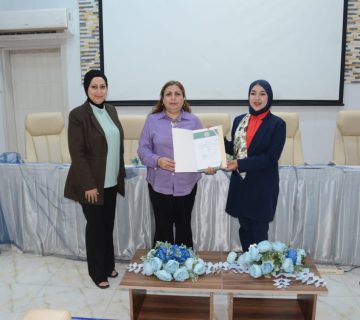 عميدة الكلية تكرم الدليلات الحاصلات على المستوى الاول في مخيم الموصل
