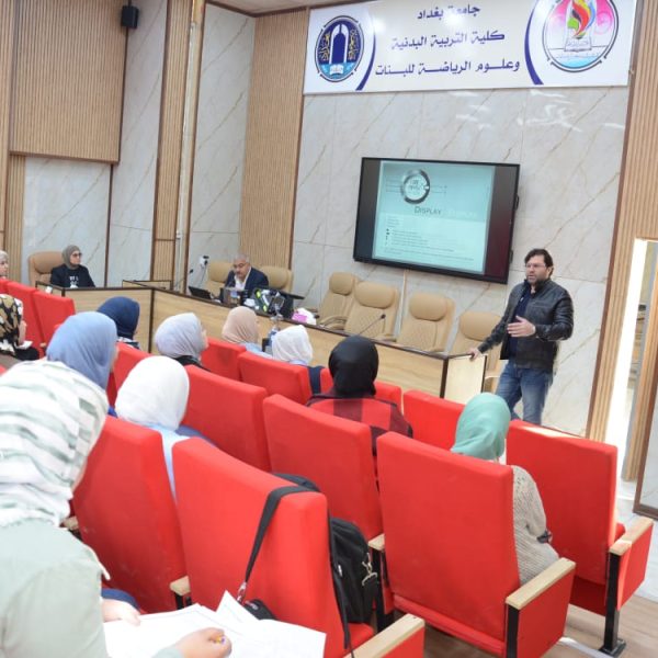 استضافت وحدة الشؤون العلمية بكلية التربية البدنية وعلوم الرياضة للبنات في جامعة بغداد، برعاية عميدتها ا.د. فاطمة عبد مالح وبإشراف مسؤولتها م.م. ديانا غانم، وبالتعاون مع التدريسية بفرع الألعاب الفردية م.د.نازك صبحي مطر، كل من التدريسيين في كلية التربية البدنية وعلوم الرياضة جامعة بغداد ا.م.د.منير عبد الصاحب وا.م.د.ميثم حبيب سبهان وم.ايلاف احمد محمد، لإقامة محاضرة علمية بعنوان (أجهزة قياس القلب وتخطيطه وأجهزة قياس الكيتون).