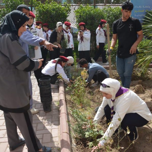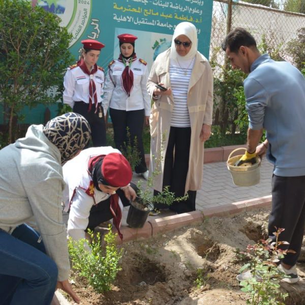 نظمت لجنة التثقيف للعمل التطوعي في كلية التربية البدنية وعلوم الرياضة للبنات بجامعة بغداد، برعاية عميدتها ا.د. فاطمة عبد مالح، وبأشراف مسؤولتها معاون العميد للشؤون الإدارية ا.م.د. نعيمة زيدان خلف، حملة تشجير واسعة بالتعاون مع وحدة الأنشطة الطلابية والزراعية والفرقة الكشفية تحت شعار (ازرع شتلة واحصد بيئة نظيفة)، وتأتي هذه المبادرة استجابة لتوجيهات وزارة التعليم العالي والبحث العلمي بضرورة توسيع المساحات الخضراء في المؤسسات التعليمية، وتزامنًا مع يوم التشجير الوطني.