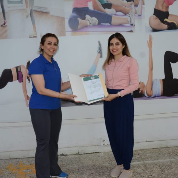وفي ختام الورشة، قدمت السيدة صفية، مسؤولة الوحدة، شهادات شكر وتقدير لفريق أورورا يوغا تقديرًا لجهودهم الكبيرة في تنظيم هذه الورشة التي تهدف إلى توضيح مفهوم اليوغا وإسهامها في تقليل القلق والتوتر الناتجين عن ضغوط الحياة.