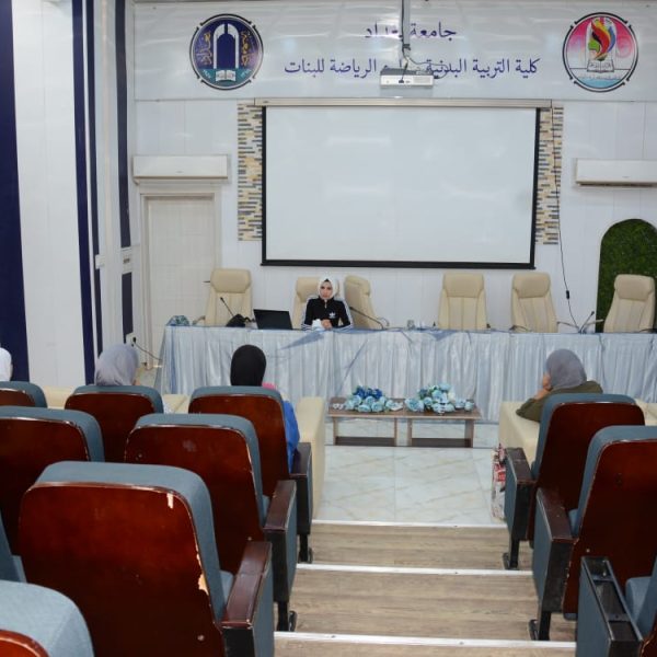 أقامت وحدة شؤون المرأة في كلية التربية البدنية وعلوم الرياضة للبنات بجامعة بغداد ورشة عمل بعنوان (القيادة الأسرية في المجتمع) قدمت الورشة من قبل التدريسيتين في فرع الألعاب الفردية، ا.د. زينة عبد السلام وم.م غفران بشير حمزة.