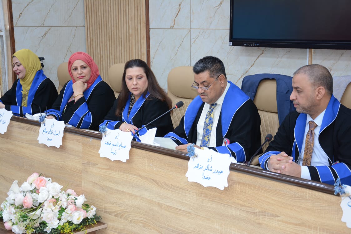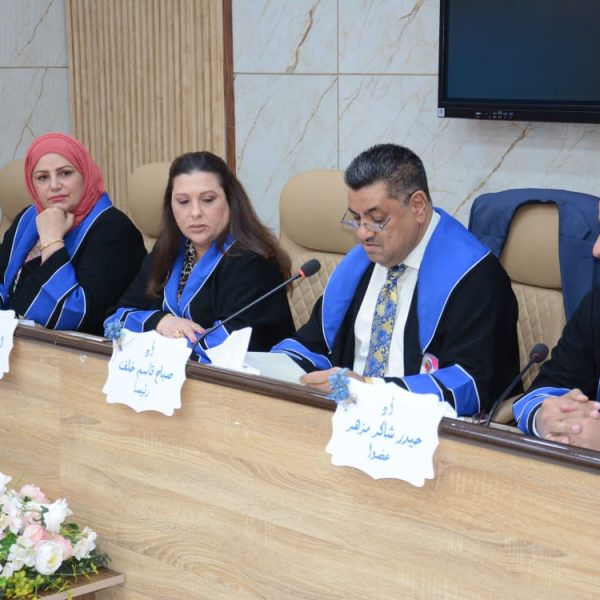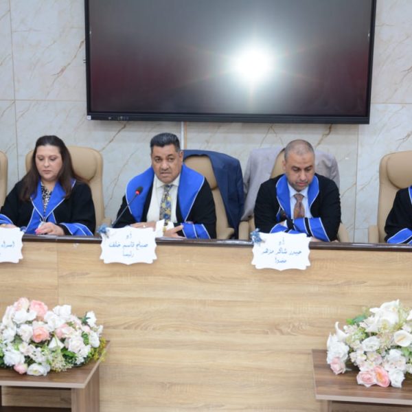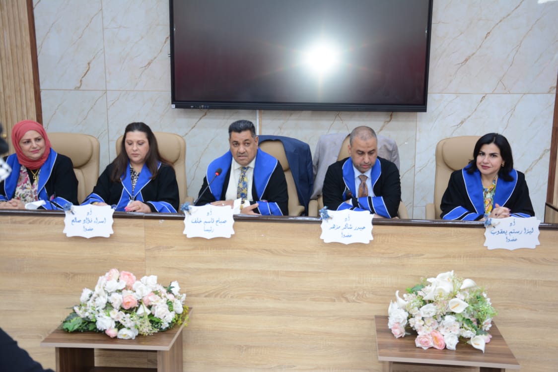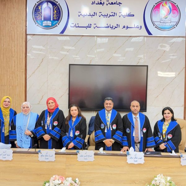 ترأس لجنة المناقشة الاستاد الدكتور صباح قاسم خلف عميد كلية التربية البدنية وعلوم الرياضة في جامعة بغداد، ورئيس لجنة عمداء كليات التربية الرياضية بالعراق, ا.د. اسراء فؤاد صالح عضوا , ا.د. حيدر شاكرمزهر من جامعة ديالى عضوا , ا.م.د. ندى محمد امين عضوا , ا.م.د. ليزا رستم يعقوب عضوا ,ا.د. لقاء عبد الله علي مشرفا .