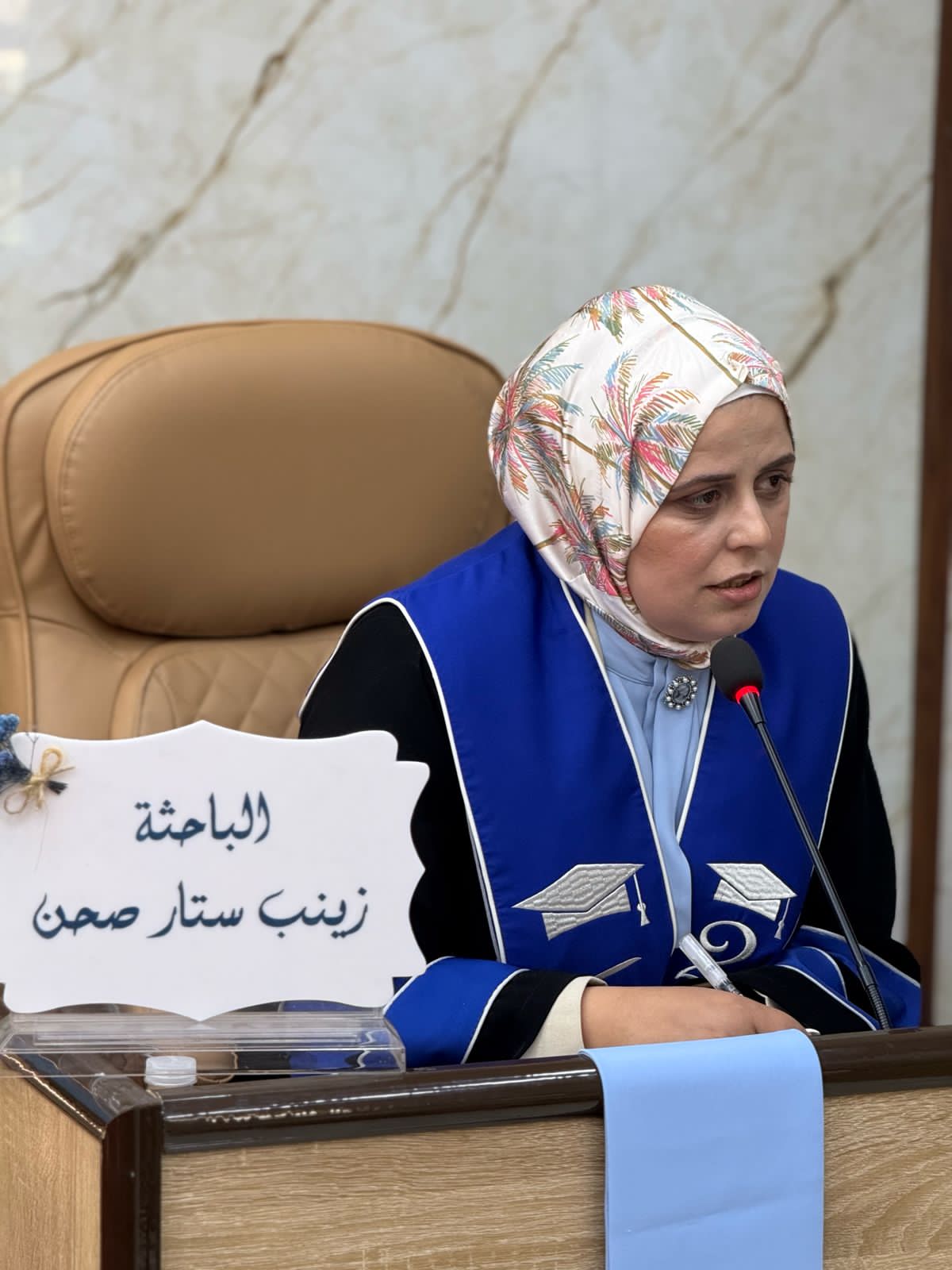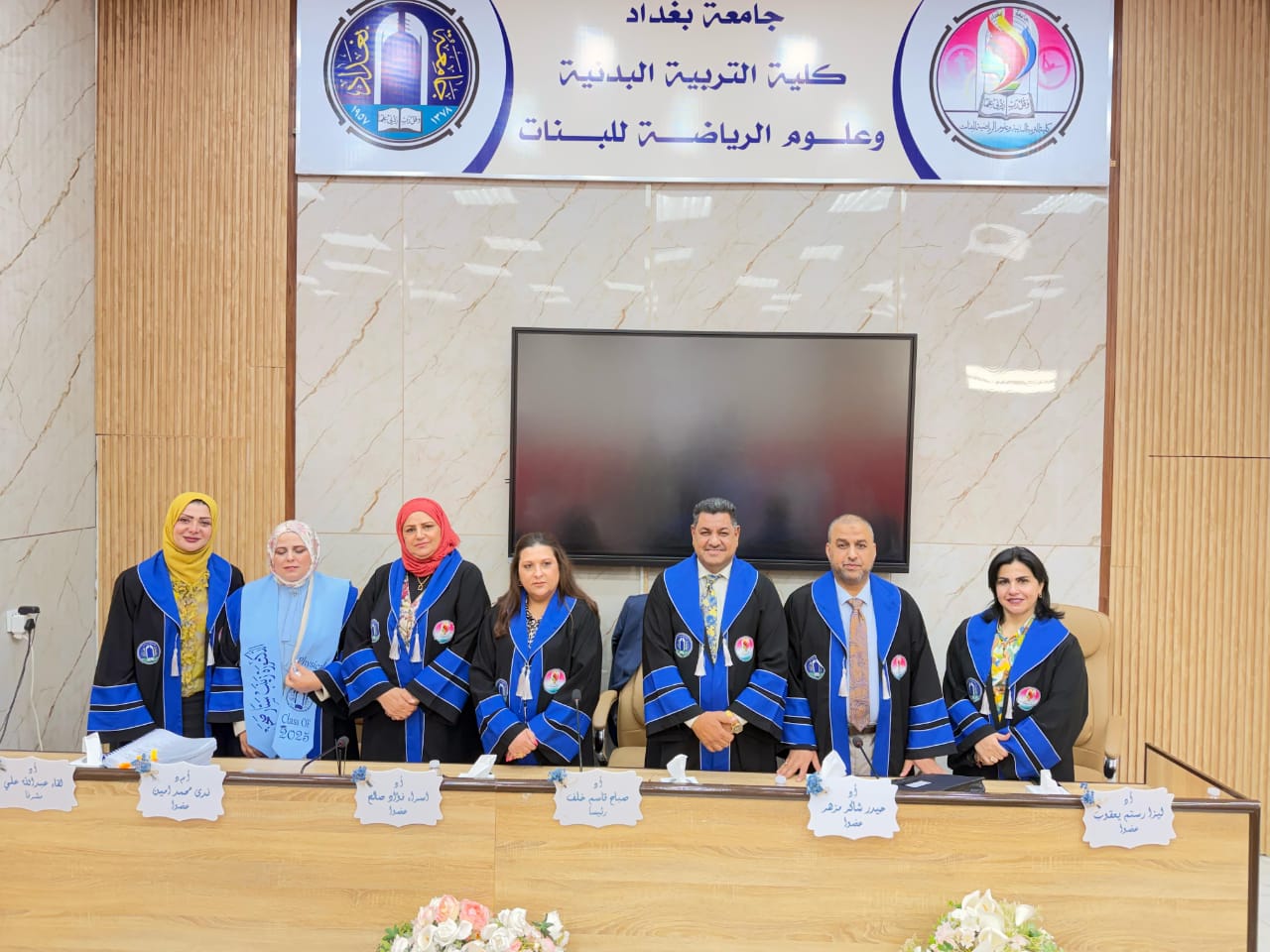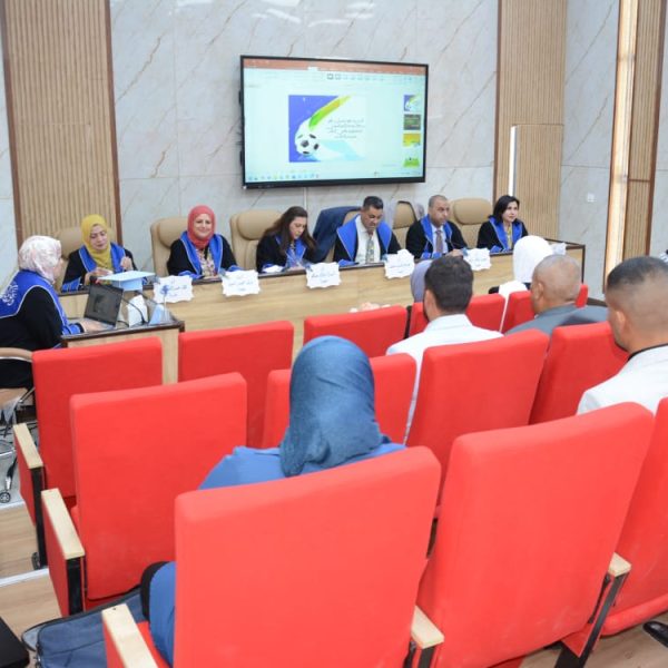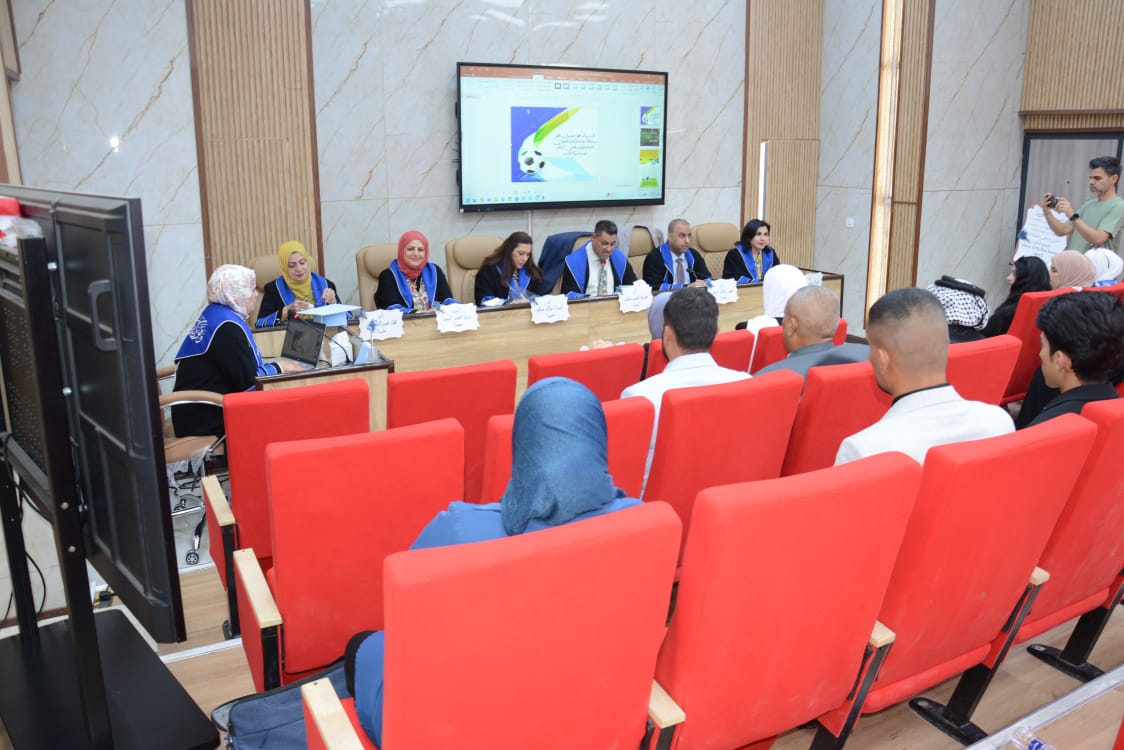 ترأس لجنة المناقشة الاستاد الدكتور صباح قاسم خلف عميد كلية التربية البدنية وعلوم الرياضة في جامعة بغداد، ورئيس لجنة عمداء كليات التربية الرياضية بالعراق, ا.د. اسراء فؤاد صالح عضوا , ا.د. حيدر شاكرمزهر من جامعة ديالى عضوا , ا.م.د. ندى محمد امين عضوا , ا.م.د. ليزا رستم يعقوب عضوا ,ا.د. لقاء عبد الله علي مشرفا .