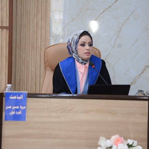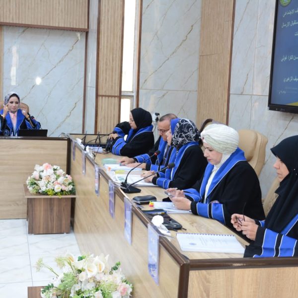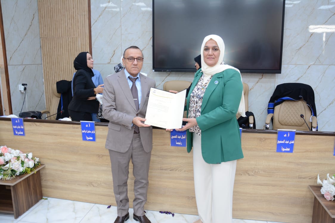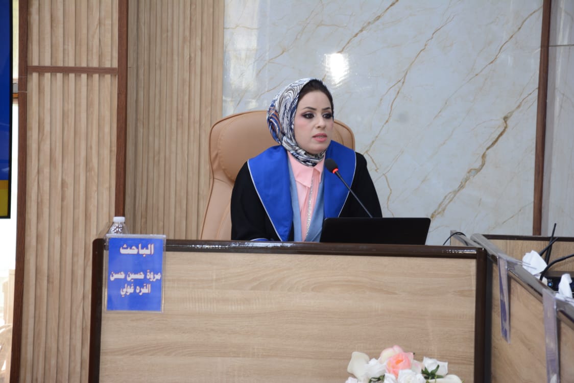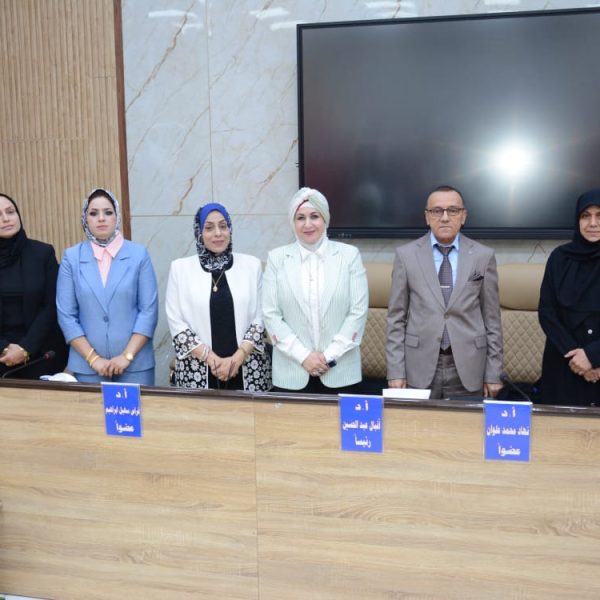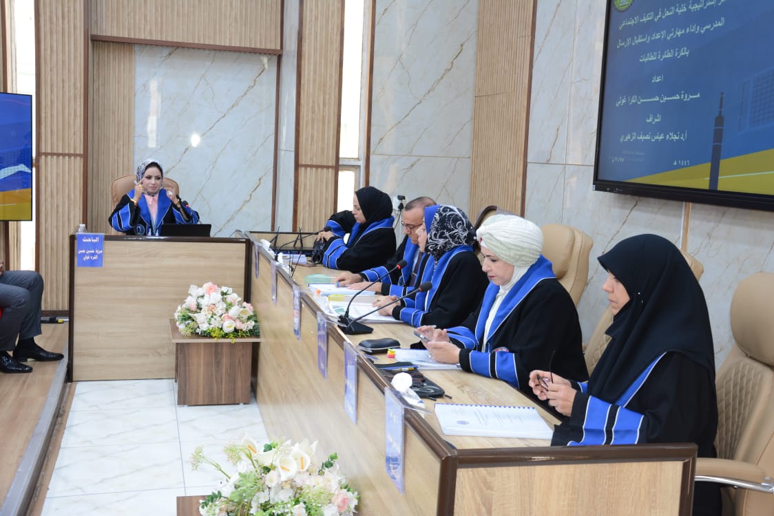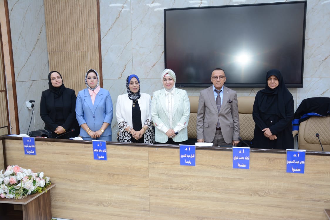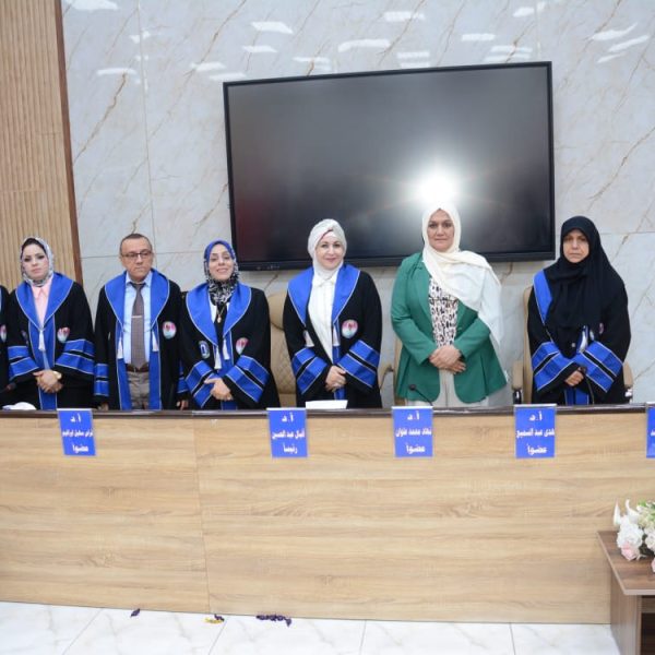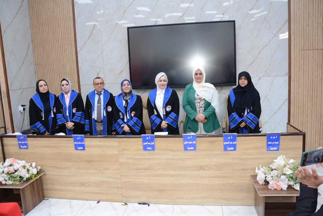 تألفت لجنة المناقشة كلا من ا.د. اقبال عبد الحسين نعمة من جامعة بغداد رئيسا , ا.د. نهاد محمد علوان عضوا , ا.د. هدى عبد السميع عبد الوهاب عضوا , ا.د. فراس سهيل ابراهيم من جامعة بابل عضوا خارجيا , ا.م.د. نديمة بدر محمد عضوا , ا.د. نجلاء عباس نصيف مشرفا .
