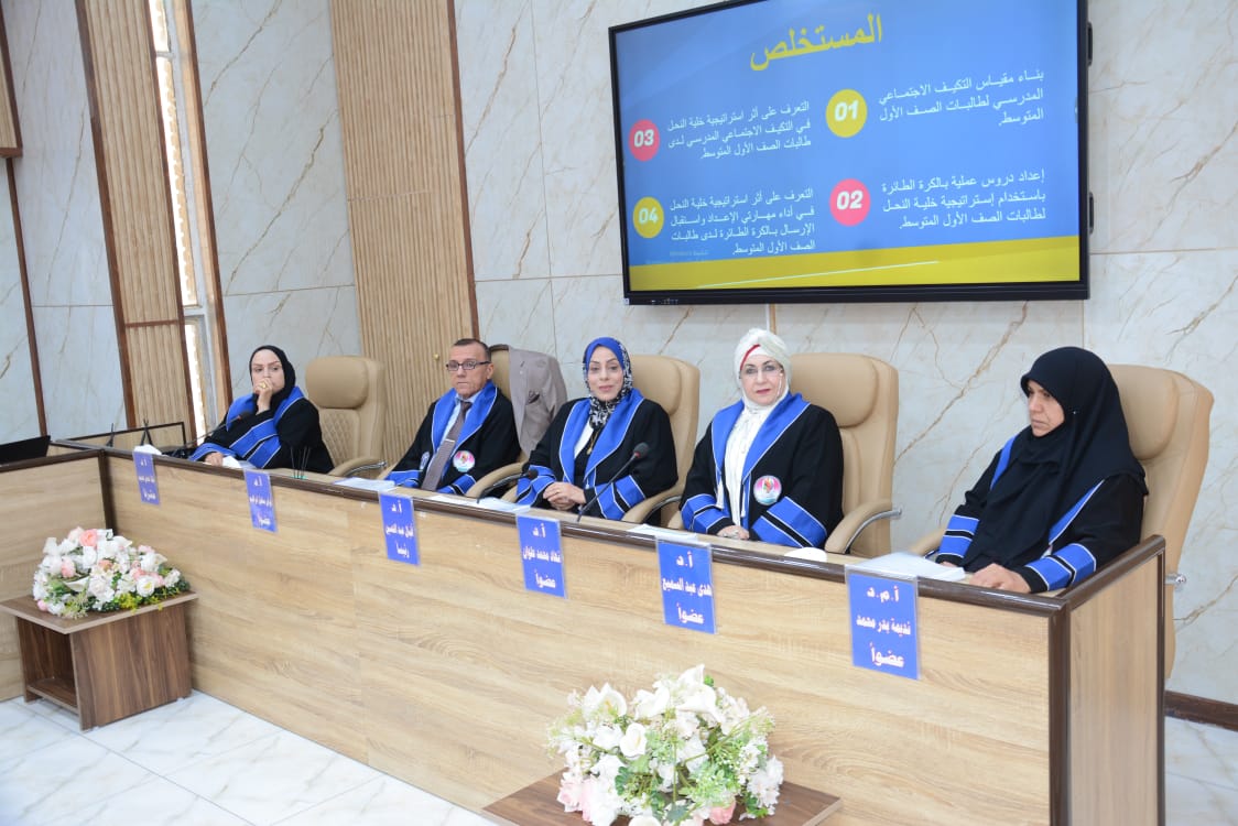نوقشت في كلية التربية البدنية وعلوم الرياضة للبنات جامعة بغداد اطروحة الدكتوراه الموسومة (اثر استراتيجية خلية النحل في التكيف الاجتماعي المدرسي وأداء مهارتي الاعداد واستقبال الارسال بالكرة الطائرة للطالبات ) للطالبة (مروة حسين حسن) .
