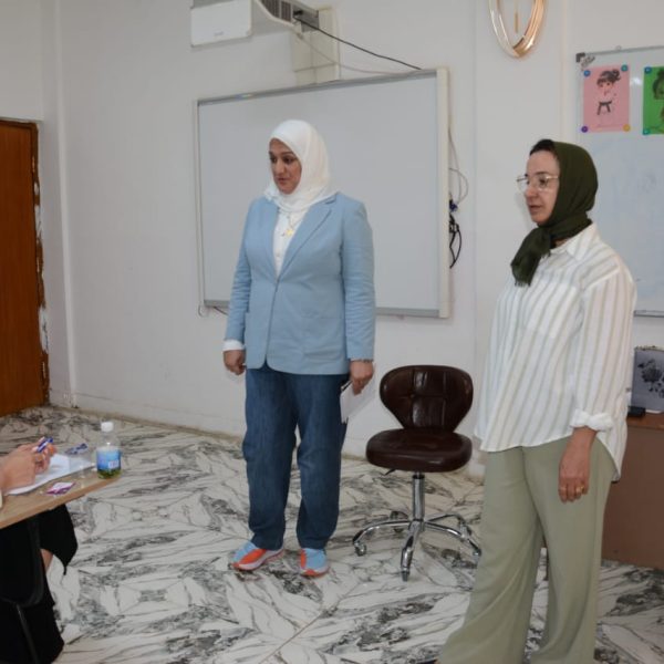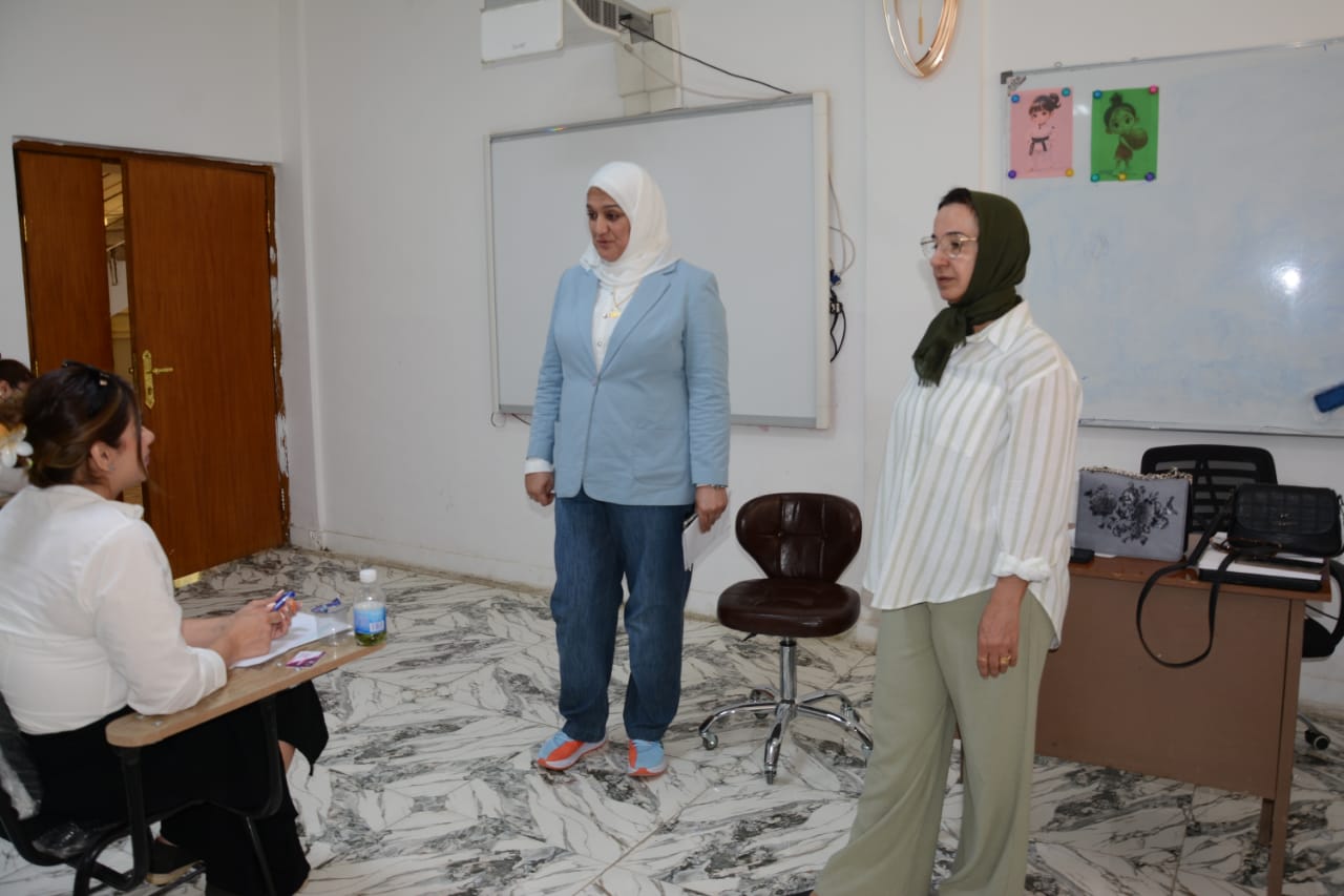 اجرت عميدة كلية التربية البدنية وعلوم الرياضة للبنات في جامعة بغداد، الأستاذة الدكتورة فاطمة عبد مالح، جولة تفقدية لامتحانات نهاية العام الدراسي للفصل الثاني/الدور الأول، لطالبات الدراسات العليا في مرحلتي الماجستير والدكتوراه.