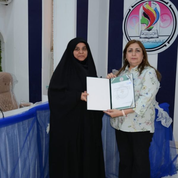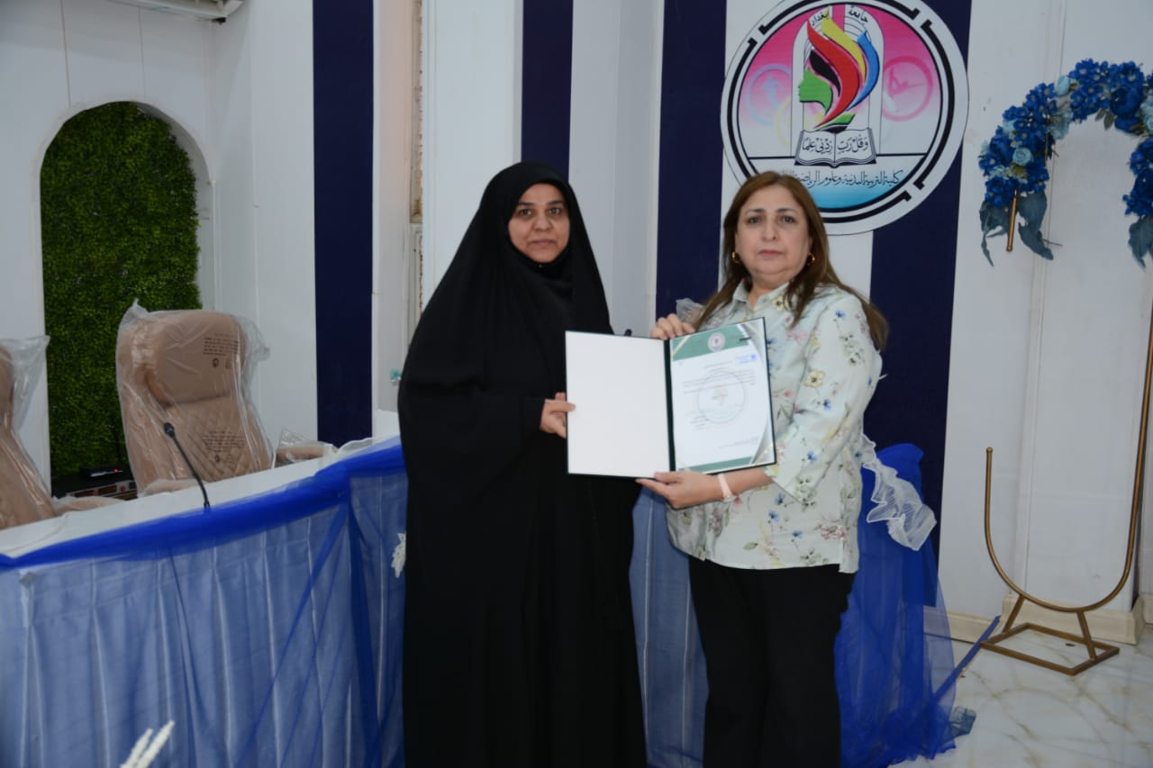 وكرمت معاونة العميد للشؤون العلميه والطلبة ا.د.سهاد حسيب الست الهام المالكي كتاب شكر وتقدير تثمينا لجهودها المبذولة في إقامة هكذا ندوة توعوية تحث المواطنين على المشاركة الانتخابية.