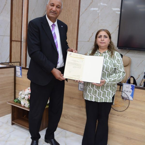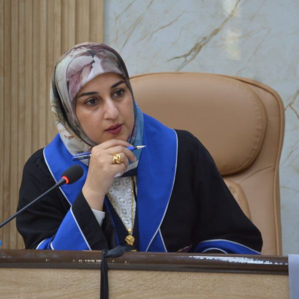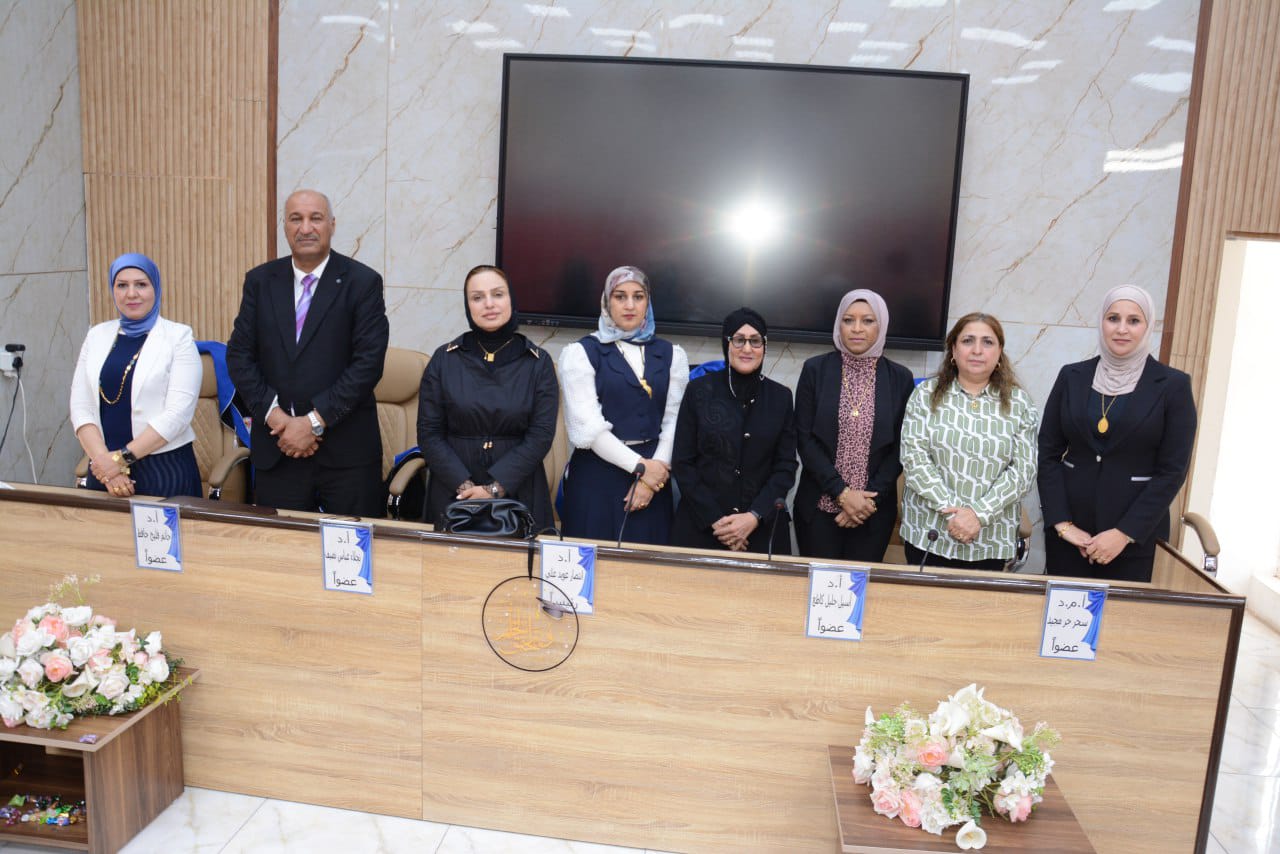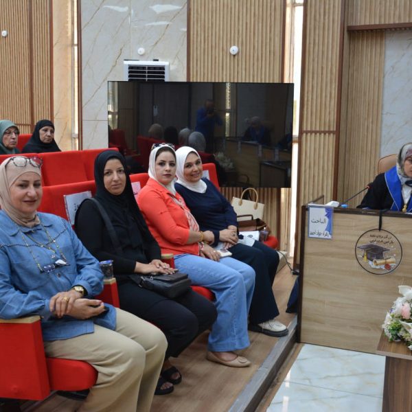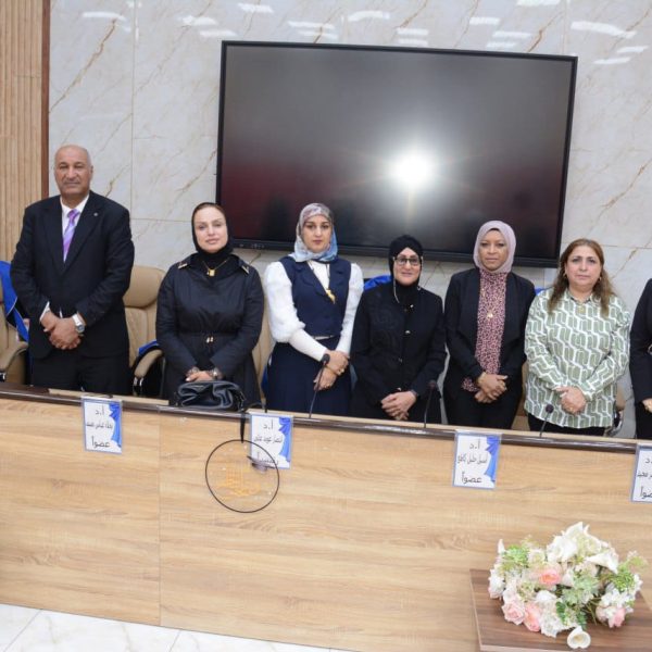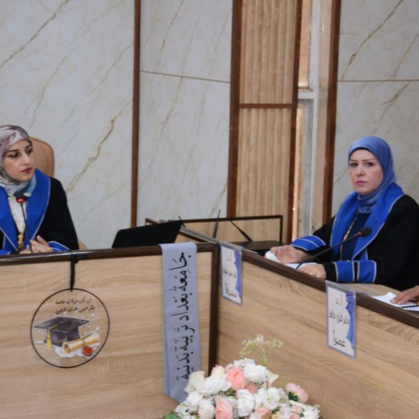 تألفت لجنة المناقشة كلا من ا.د. انتصار عويد علي من جامعة بغداد رئيسا، ا.د. نجلاء عباس نصيف عضوا، ا.د. اسيل جليل كاطع عضوا، ا.د. حاكم فليح حافظ من جامعة الكوفة عضوا خارجيا، ا.م.د سحر حر مجيد عضوا، ا.د. لمى سمير حمودي مشرفا.