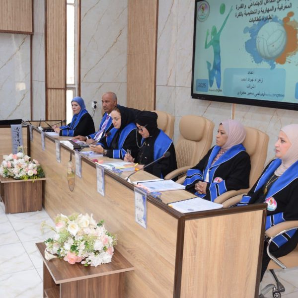شهدت كلية التربية البدنية وعلوم الرياضة للبنات جامعة بغداد مناقشة أطروحة الدكتوراه الموسومة (تأثير استراتيجية (4h) في الذكاء الوجداني والتفاعل الاجتماعي والقدرة المعرفية والمهارية والتحكيمية بالكرة الطائرة للطالبات)، للطالبة (زهراء جواد احمد).