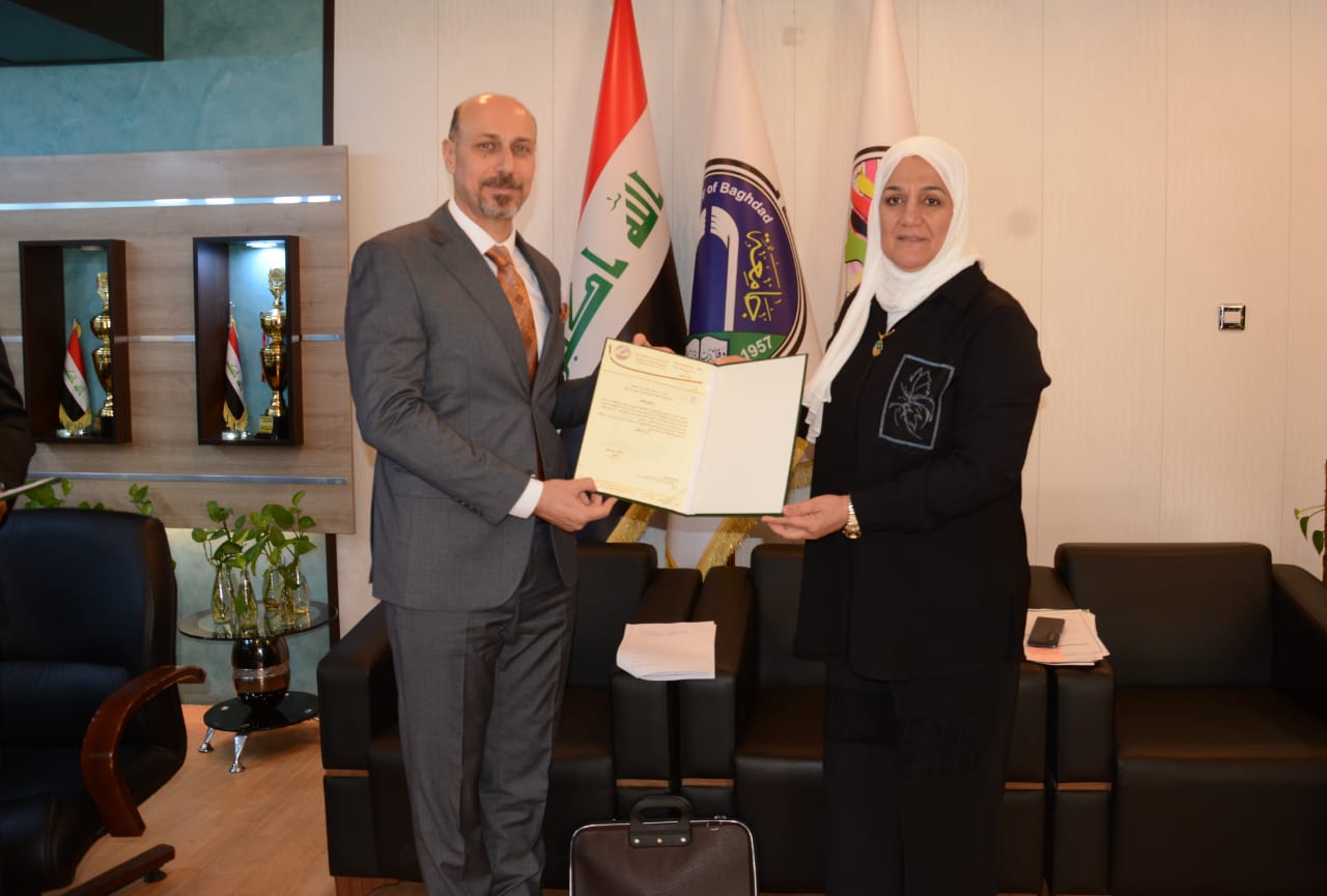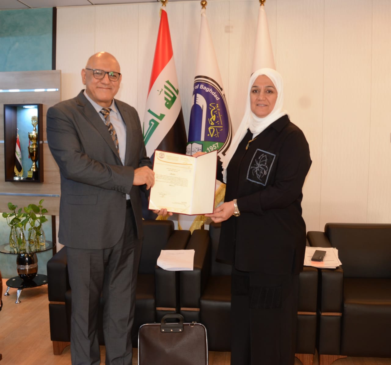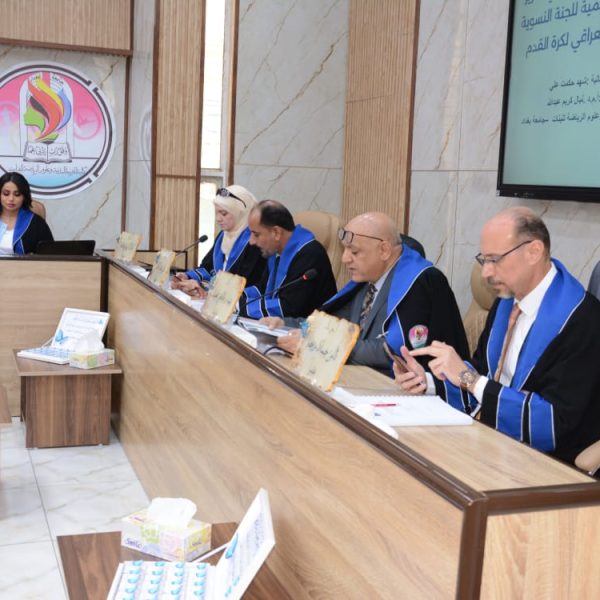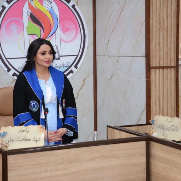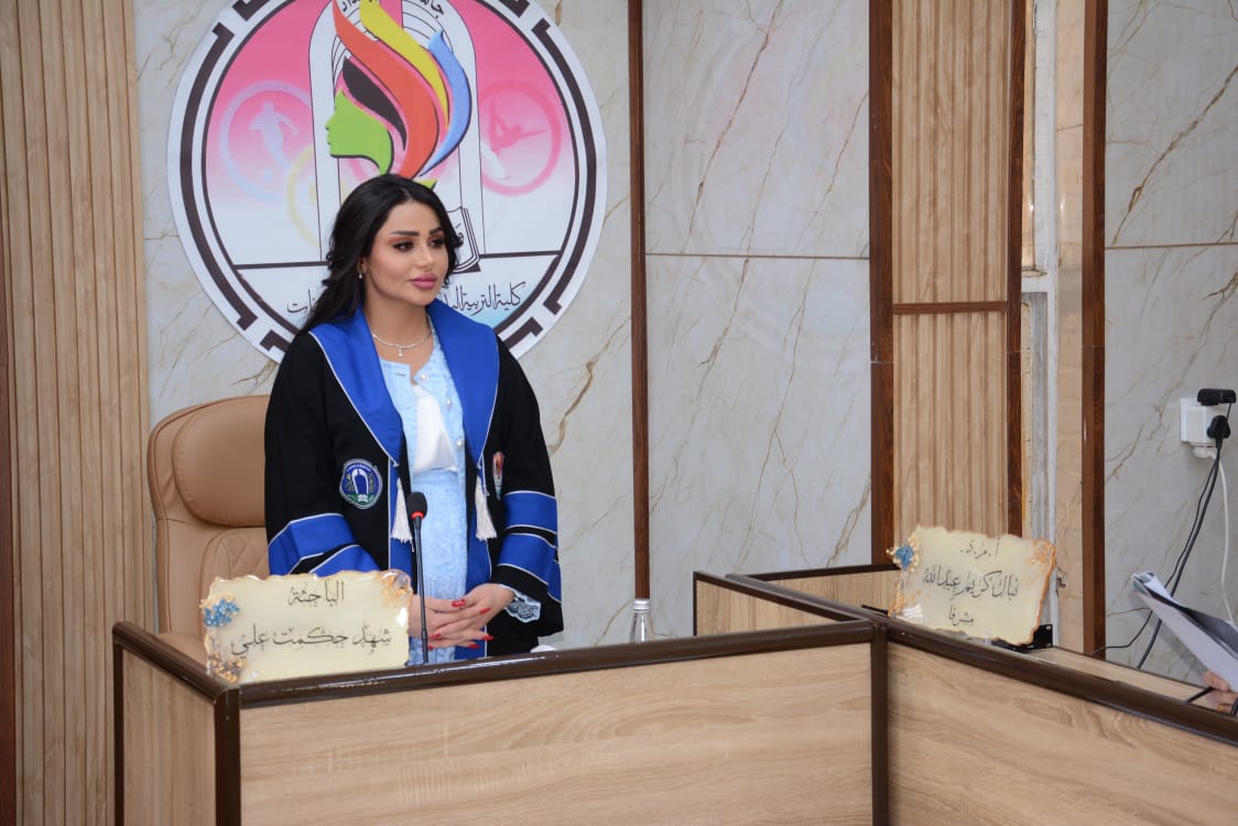 شهدت كلية التربية البدنية وعلوم الرياضة للبنات جامعة بغداد مناقشة رسالة الماجستير الموسومة (فاعلية الاعلام الرياضي في تعزيز السمعة التنظيمية للجنة النسوية في الاتحاد الع راقي لكرة القدم)، للطالبة (شهد حكمت علي).