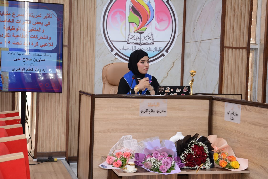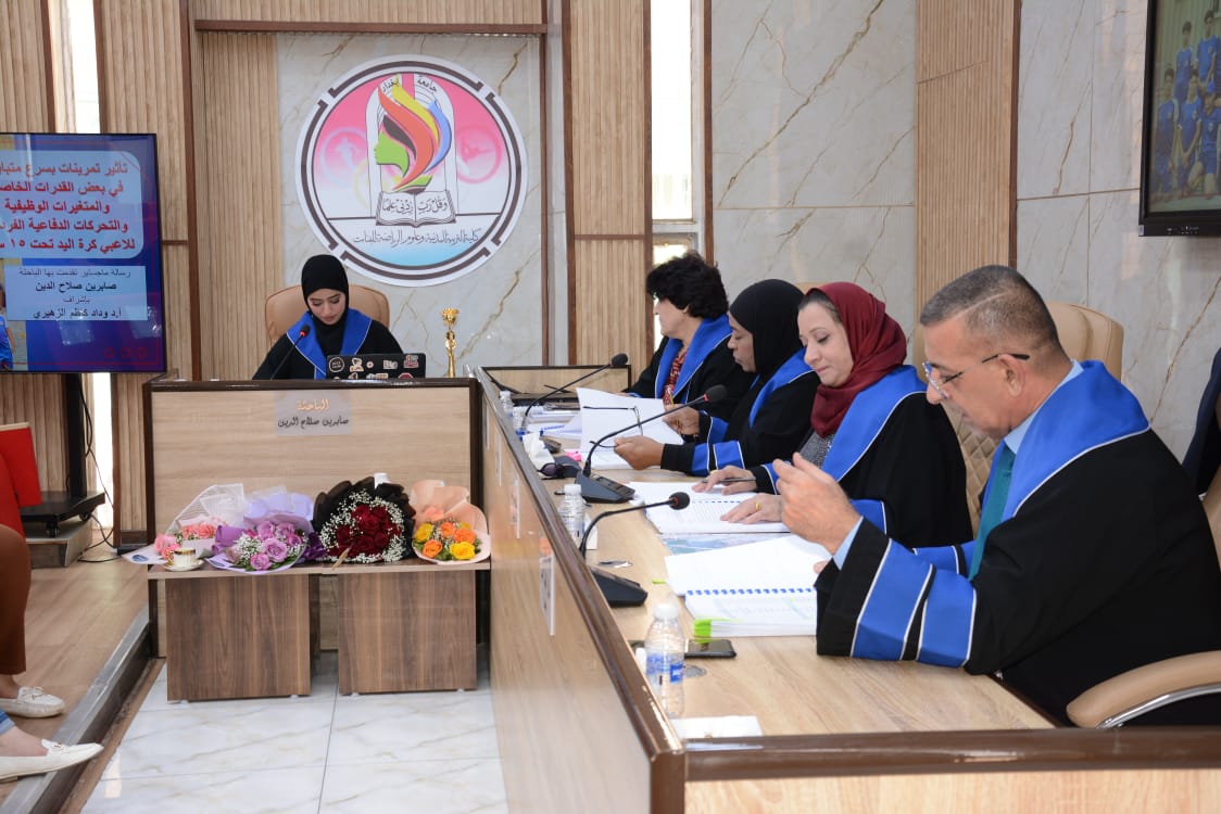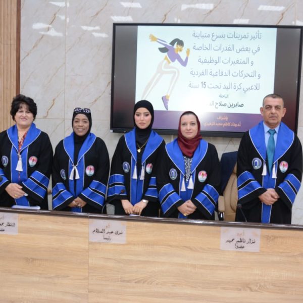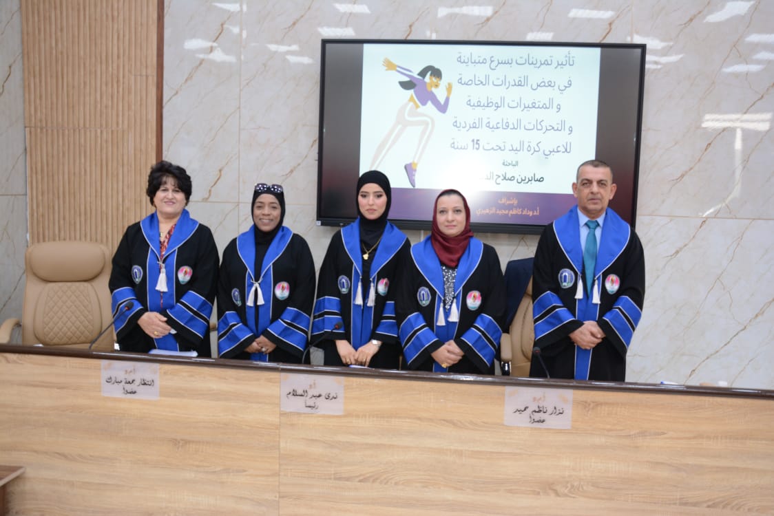نوقشت في كلية التربية البدنية وعلوم الرياضة للبنات جامعة بغداد رسالة الماجستير الموسومة (تأثير تمرينات بسرع متباينة في بعض القدرات الخاصة والمتغيرات الوظيفية والتحركات الدفاعية الفردية للاعبي كرة اليد تحت 18 سنة )، للطالبة (صابرين صلاح الدين حسن).