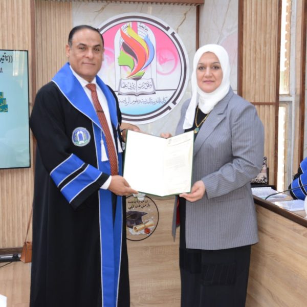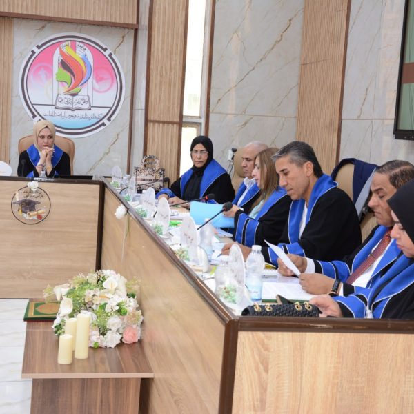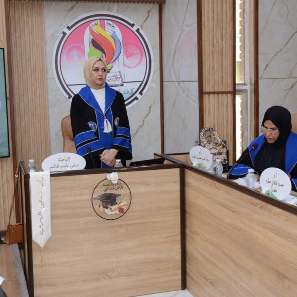 تألفت لجنة المناقشة كلا من ا.د. سهاد حسيب عبد الحميد من جامعة بغداد رئيسا، ا.د.حسن هادي عطية من الجامعة المستنصرية عضوا، ا.م.د.اسماعيل سليم عبد عضوا، ا.م.د.علي مسير ياسين عضوا، ا.م.د.اسراء جميل حسين، ا.د. سعاد عبد الحسين وهيب مشرفا.