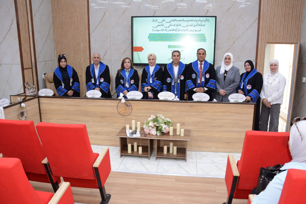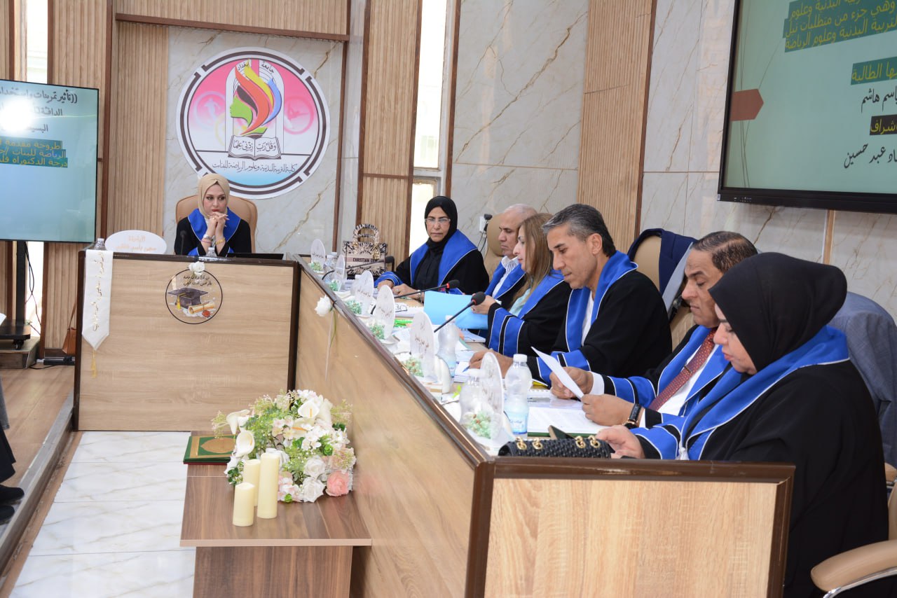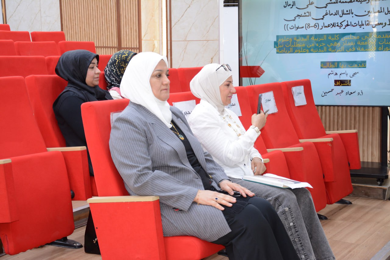 نوقشت في كلية التربية البدنية وعلوم الرياضة للبنات جامعة بغداد اطروحة الدكتوراه الموسومة (تأثير تمرينات واستخدام وسيلة مصممة للمشي على الرمال الدافئة لتأهيل المصابين بالشلل الدماغي التشنجي البسيط وبعض القابليات الحركية للاعمار (6-8) سنوات)، للطالبة (سجى باسم هاشم).