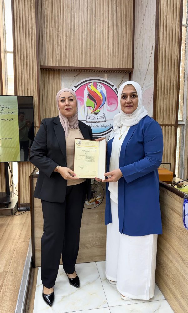 كما ضمت لجنة المناقشة كلا من ا.د. لقاء عبد الله علي عضوا , ا.د.ندى محمد امين عضوا ,ا.م.د.سؤدد ابراهيم سهيل عضوا ,ا.م.د عماد جاسم هاشم من الجامعة التكنلوجية عضوا خارجيا ,ا.د اسراء فؤاد صالح مشرفا .