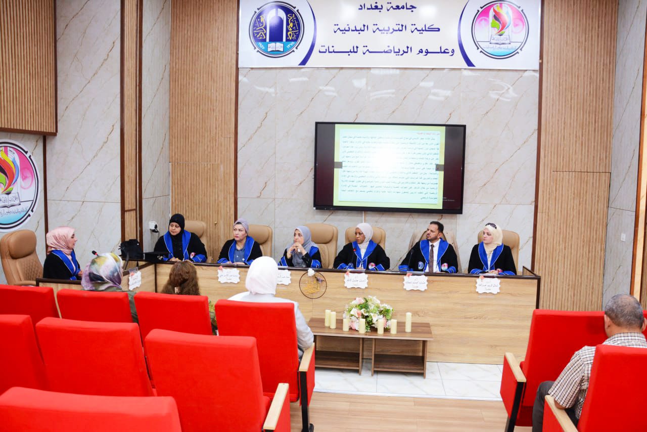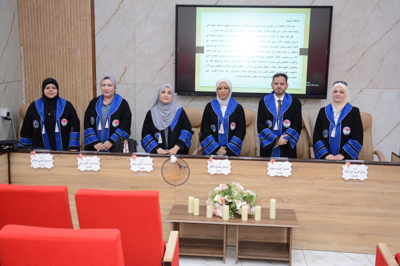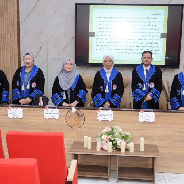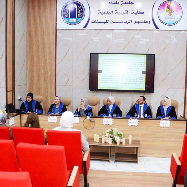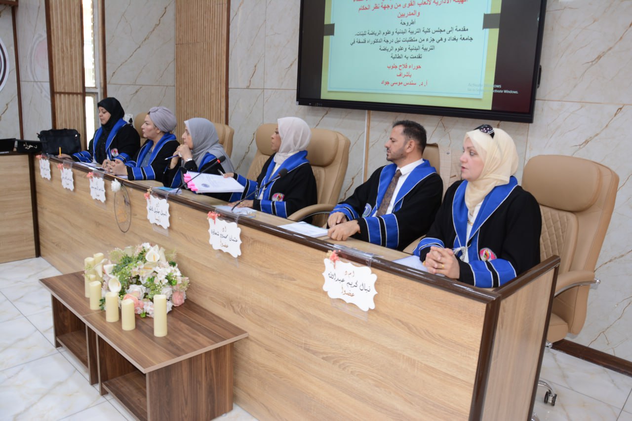 نوقشت في كلية التربية البدنية وعلوم الرياضة للبنات جامعة بغداد اطروحة الدكتوراه الموسومة (دور التنظيم الذاتي والالتزام التنظيمي لاعضاء الهيئة الادارية لالعاب القوى من وجهة نظر الحكام والمدربين) , للطالبة (حوراء فلاح جلوب) .
