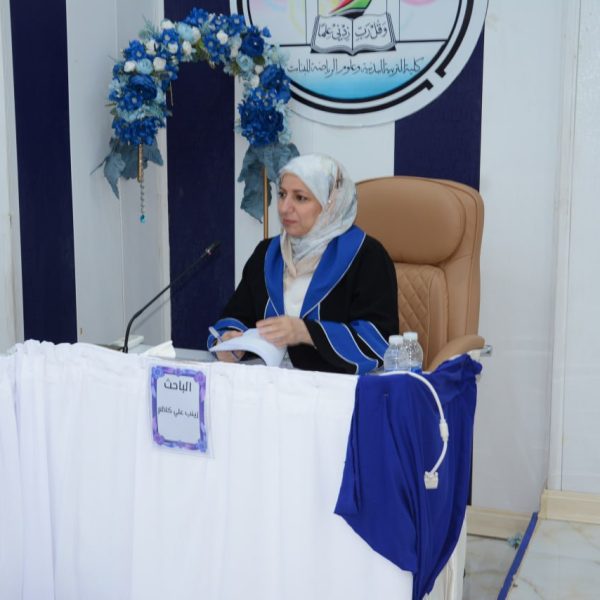 جرت في كلية التربية البدنية وعلوم الرياضة للبنات جامعة بغداد مناقشة اطروحة الدكتوراه الموسومة (دور القيادة الاستراتيجية والتشارك المعرفي في تسويق النتاجات العلمية الرياضية من وجهة نظر تدريسيي كليات التربية البدنية وعلوم الرياضة)، للطالبة (زينب علي كاظم).