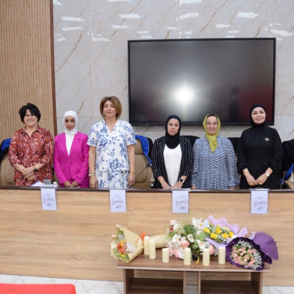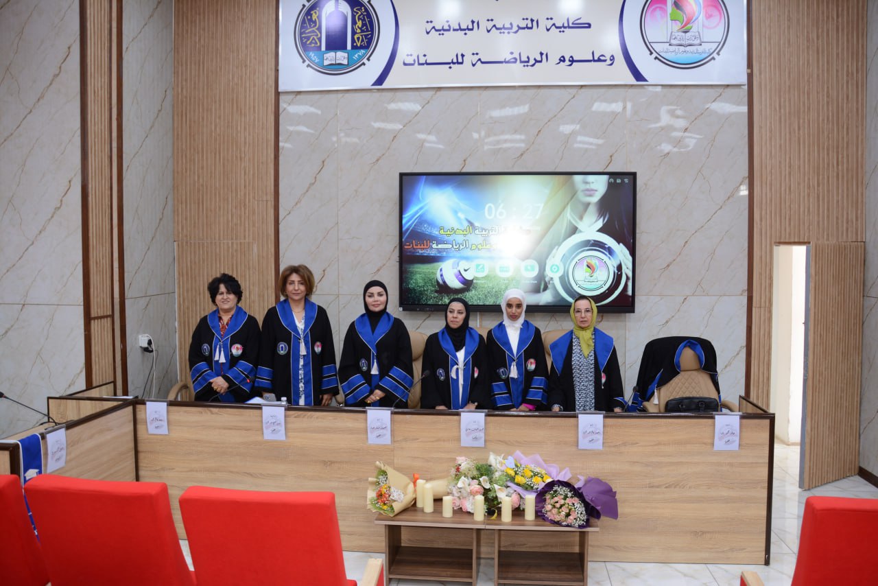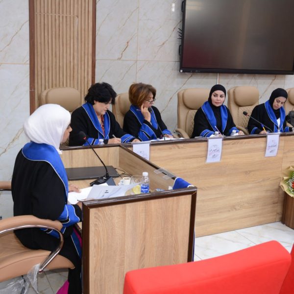 تألفت لجنة المناقشة كلا من ا.د.هدى شهاب جاري من جامعة بغداد رئيسا، ا.د.حسناء ستار جبار عضوا، ا.د.انتصار كاظم عبد الكريم عضوا، ا.م.د.ايمان صبيح حسين عضوا، ا.م.د.خالد محمد رضا من جامعة كربلاء عضوا خارجيا، ا.د.وداد كاظم مجيد مشرفا.