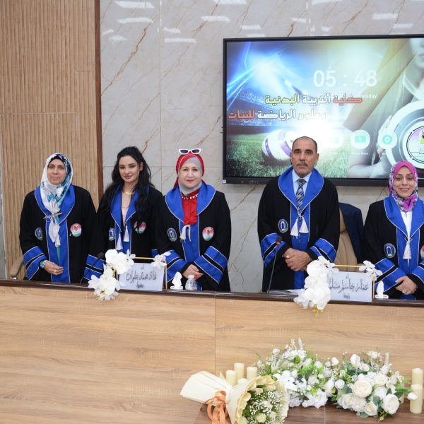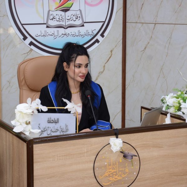 شهدت كلية التربية البدنية وعلوم الرياضة للبنات جامعة بغداد مناقشة رسالة الماجستير الموسومة (اثر استراتيجية شجرة الذاكرة في التفكير التفاعلي واداء بعض المهارات الهجومية المركبة بكرة القدم للطلاب) ,للطالبة (طيبة حسين عبود) .