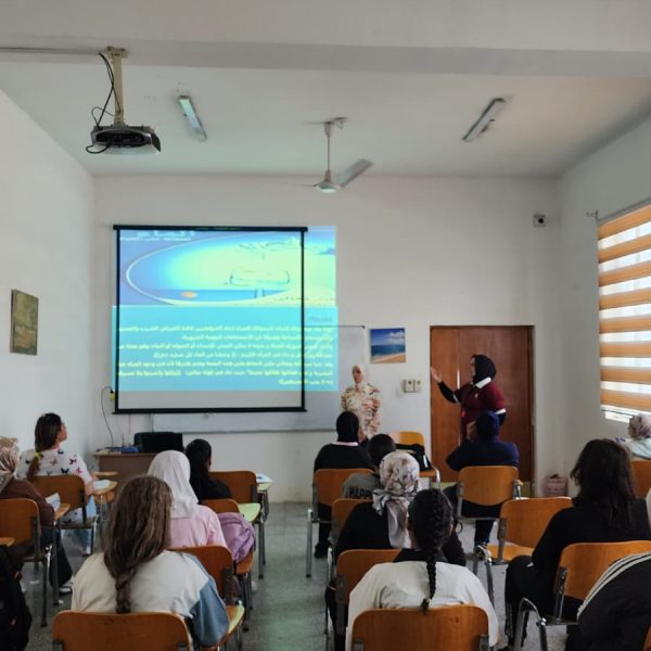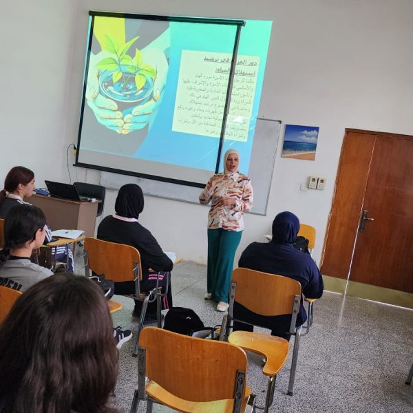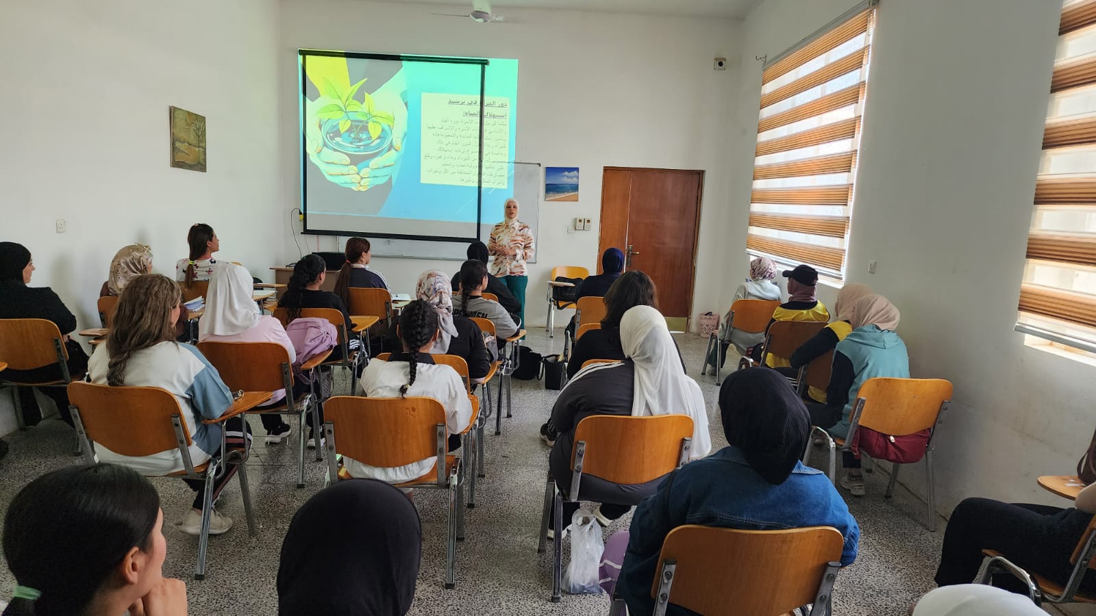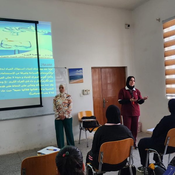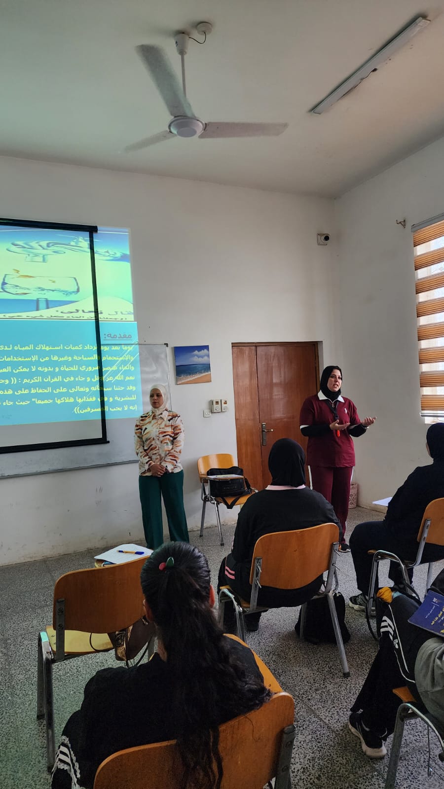 هدفت المحاضرة الى تسليط الضوء على ظاهرة شحة المياه وتوعية الطالبات بأثر الاستهلاك المفرط للمياه على البيئة المحلية كون المياه المصدر الاساسي الحياة.