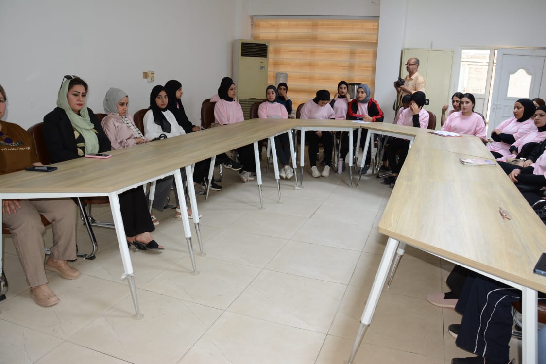 ضمن برامج الكلية الهادفة إلى تعزيز الوعي الصحي ونشر ثقافة النشاط البدني بين منسوبي الكلية ، اقامت وحدة الأرشاد النفسي الجامعي في كلية التربية البدنية وعلوم الرياضة للبنات جامعة بغداد ، بالتعاون مع وزارة الشباب والرياضة/ دائرة الدراسات وتطوير الملاكات القيادية الشبابية ،اليوم الثلاثاء الموافق 28/10/2025 ، ورشة عمل بعنوان “أثر الثقافة الرياضية في السلوكيات الصحية والاجتماعية الشباب “، والتي اقيمت في قاعة الريادة بالكلية ، بحضور مجموعة من تدريسيات وطالبات الكلية والمهتمين بالشأن الرياضي ، حاضرت فيها عميدة الكلية الأستاذ الدكتور فاطمة عبد مالح ، والأستاذة سعاد سبتي .