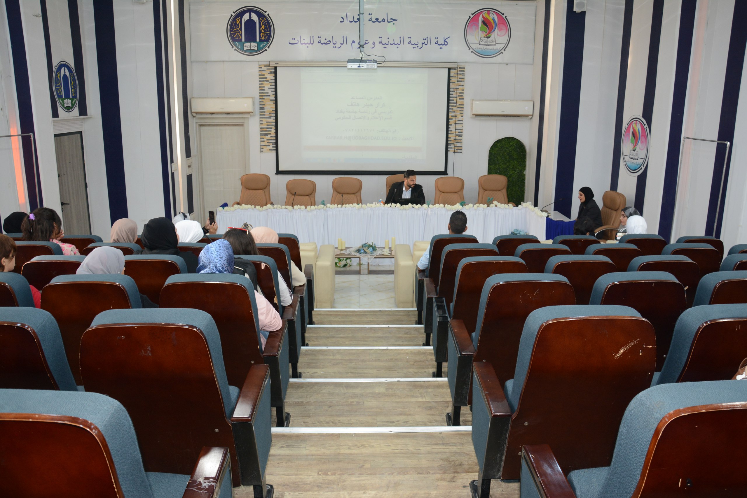 استضافت وحدة الإرشاد النفسي الجامعي في كلية التربية البدنية وعلوم الرياضة للبنات جامعة بغداد برعاية عميدتها الأستاذ الدكتور فاطمة عبد مالح ، وبأشراف مسؤولتها م.د. هند سالم تايه ، التدريسي في رئاسة جامعة بغداد/ قسم الاعلام والاتصال الحكومي م.م. كرار حيدر هاتف ، لإقامة ندوة علمية بعنوان (أثر المحتوى الهابط على الشباب ودور المتلقي في مواجه هذا المحتوى ) .