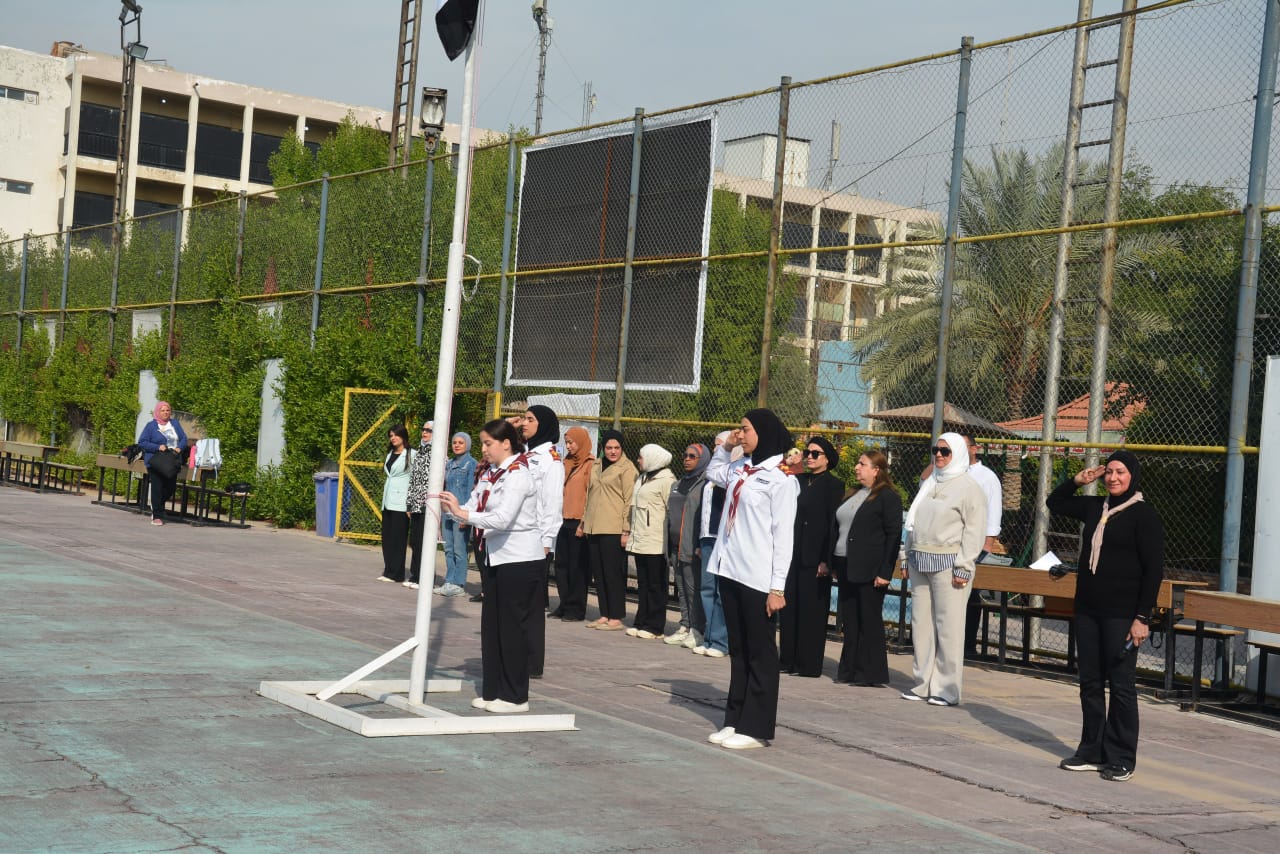 برعاية عميدة كلية التربية البدنية وعلوم الرياضة للبنات جامعة بغداد الأستاذ الدكتور فاطمة عبد مالح ، نظمت لجنة طرائق التدريس بالتعاون مع وحدة الإرشاد وشعبة الأنشطة الطلابية (وحدة الانشطة الكشفية) في الكلية، مراسيم رفع العلم في ساحة العلم داخل حرم الكلية، وذلك في إطار تعزيز قيم الانتماء الوطني وترسيخ روح المواطنة لدى الطالبات ومنتسبات الكلية.
