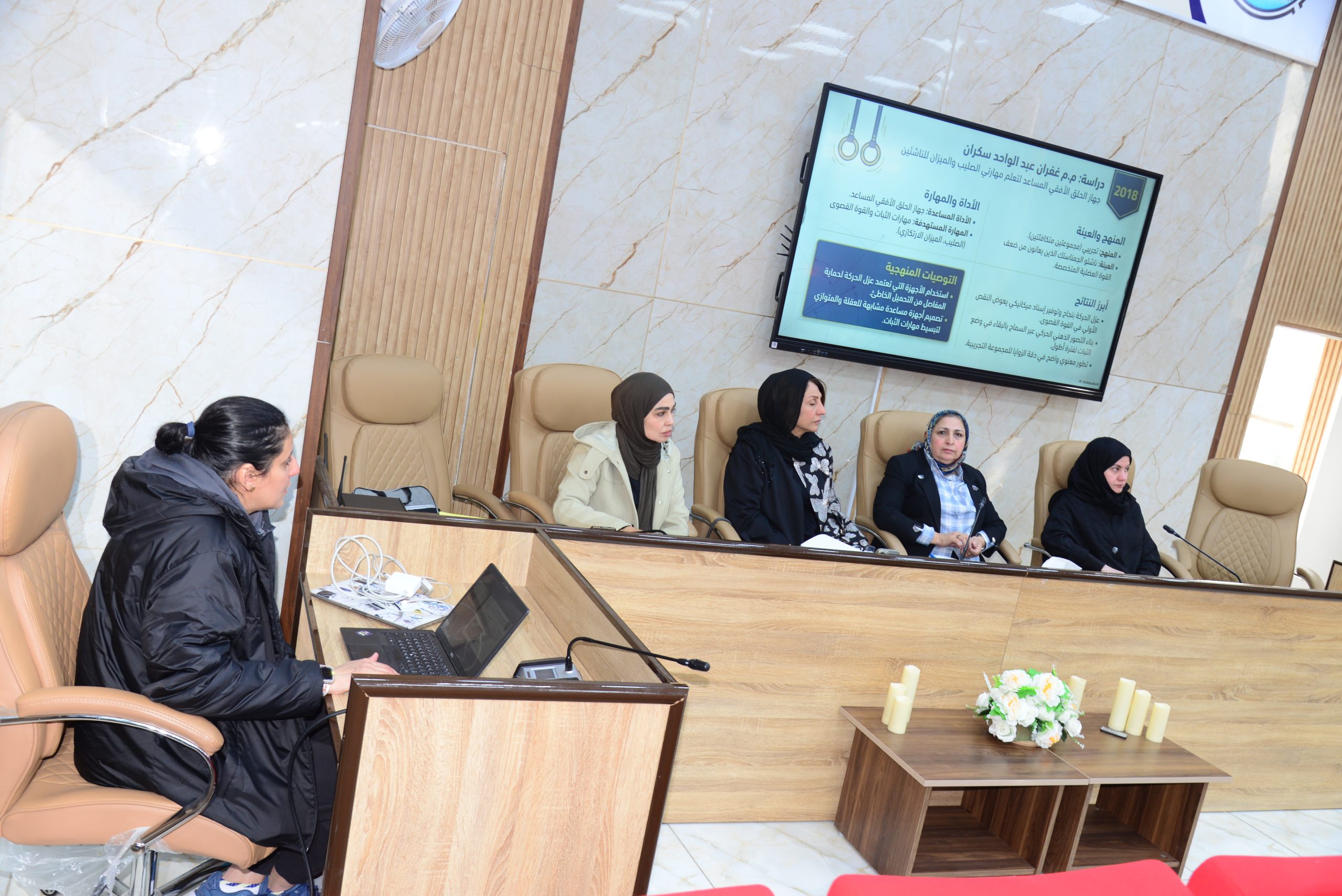 وتضمنت العروض شرحاً مفصلاً للمنهجيات المتبعة والتوجهات التطبيقية المعتمدة في الأبحاث، مع التركيز على الإسهامات النوعية التي تقدمها هذه الدراسات للحقل العلمي، وفي ختام الجلسة قدمت اللجنة العلمية ملاحظاتها الدقيقة وتوصياتها الأساسية الرامية إلى تحسين جودة البحث وتعزيز دقة أدوات القياس والتحليل المستخدمة.