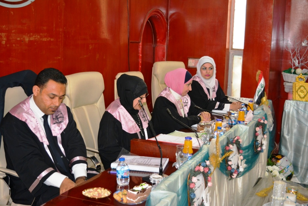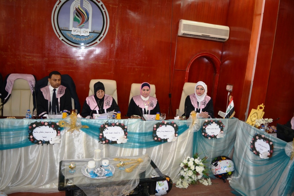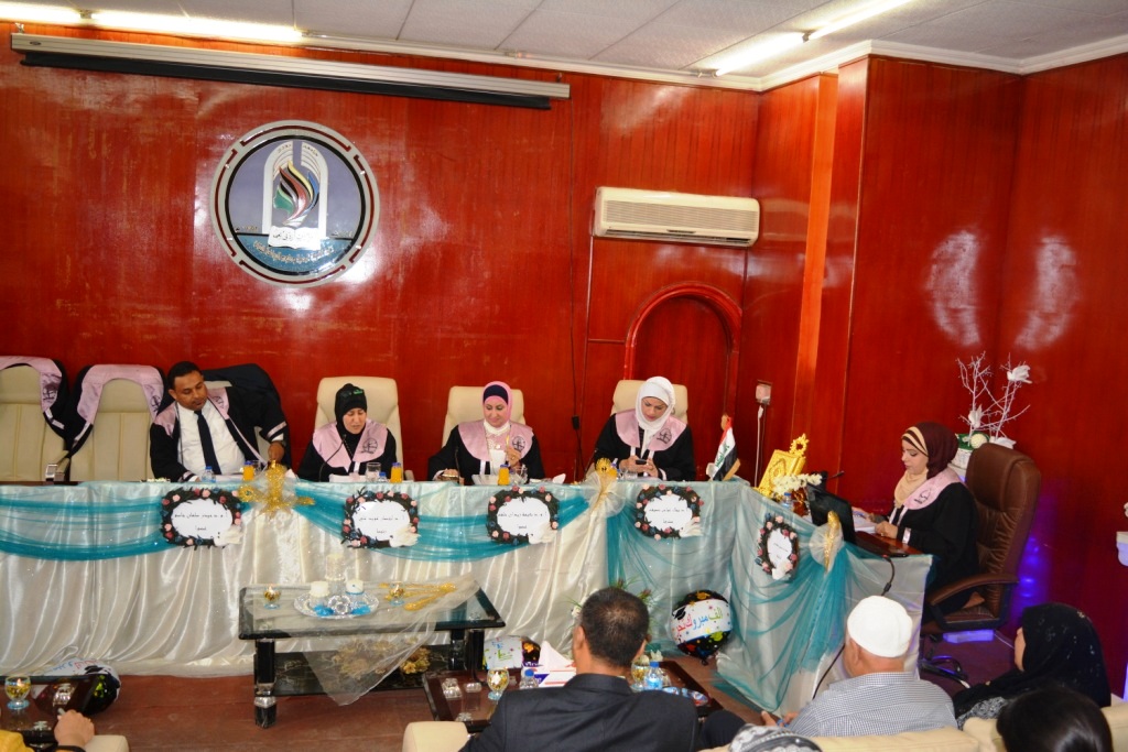 وحضر المناقشة جمع من اساتذة الكلية وطلبة الدراسات العليا وذوي الطالبة والضيوف الكرام … تمنياتنا للباحثة سداد حسن حمادي بدوام التقدم والنجاح .
